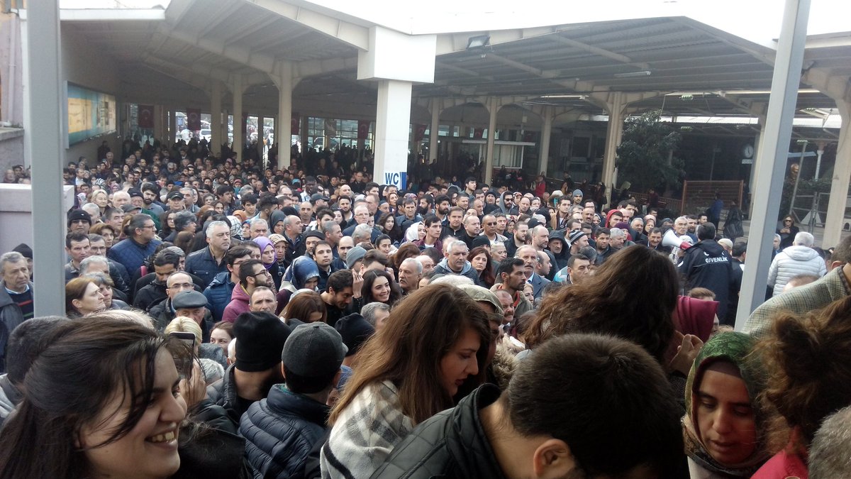 Marmaray’ı kullanmak isteyen yolcular Marmaray istasyonu dışında bekletilip sırayla kontrollü olarak içeri alınıyor.