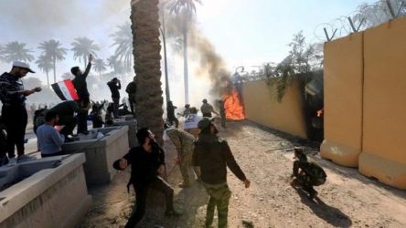 ABD uçakları Haşdi Şabi üslerini bombalamış ve bunun üzerine protestolar başlamıştı. Büyüyen protestolarda ABD Büyükelçiliği’ne Haşdi Şabi taraftarları tarafından saldırı düzenlenmiş ve kapı önünde ABD bayrakları yakılmıştı.