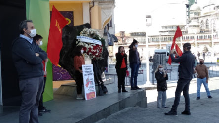 Çerkezoğlu, “Bir kez daha 1 Mayıs öncesinde Taksim’de Kazancı Yokuşu’nun başında 1 Mayıs’ın ve Taksim’in özgürleştirilmesinde yitirdiğimiz bütün kardeşlerimizi anmak için toplandık” diye konuştu.