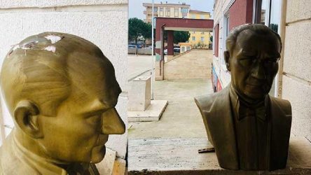 Büstün üzerinde bulunan harfler yer yer sökülerek, hakaret içeren kelimeler oluşturulmak istendi.
