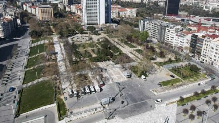 Erdoğan, yaklaşık 20 dakika süren incelemelerinin ardından Taksim Meydanı’nda yürüyerek yine yapımında sona gelinen cami inşaatını inceledi.