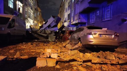 İstanbul’da dün akşam saatlerinden beri yaşanan şiddetli fırtına nedeniyle pek çok ilçede apartmanların çatıları yol ve araçların üzerine düştü.