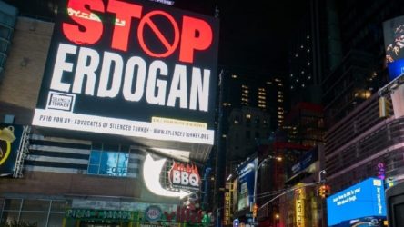 ABD New York’taki Times Meydanı’ndaki ‘Stop Erdogan’ ilanına karşılık, Türk-Amerikan Ulusal Yönlendirme Komitesi (TASC) tarafından aynı meydanda dijital ekranlı kamyonet dolaştırıldı.