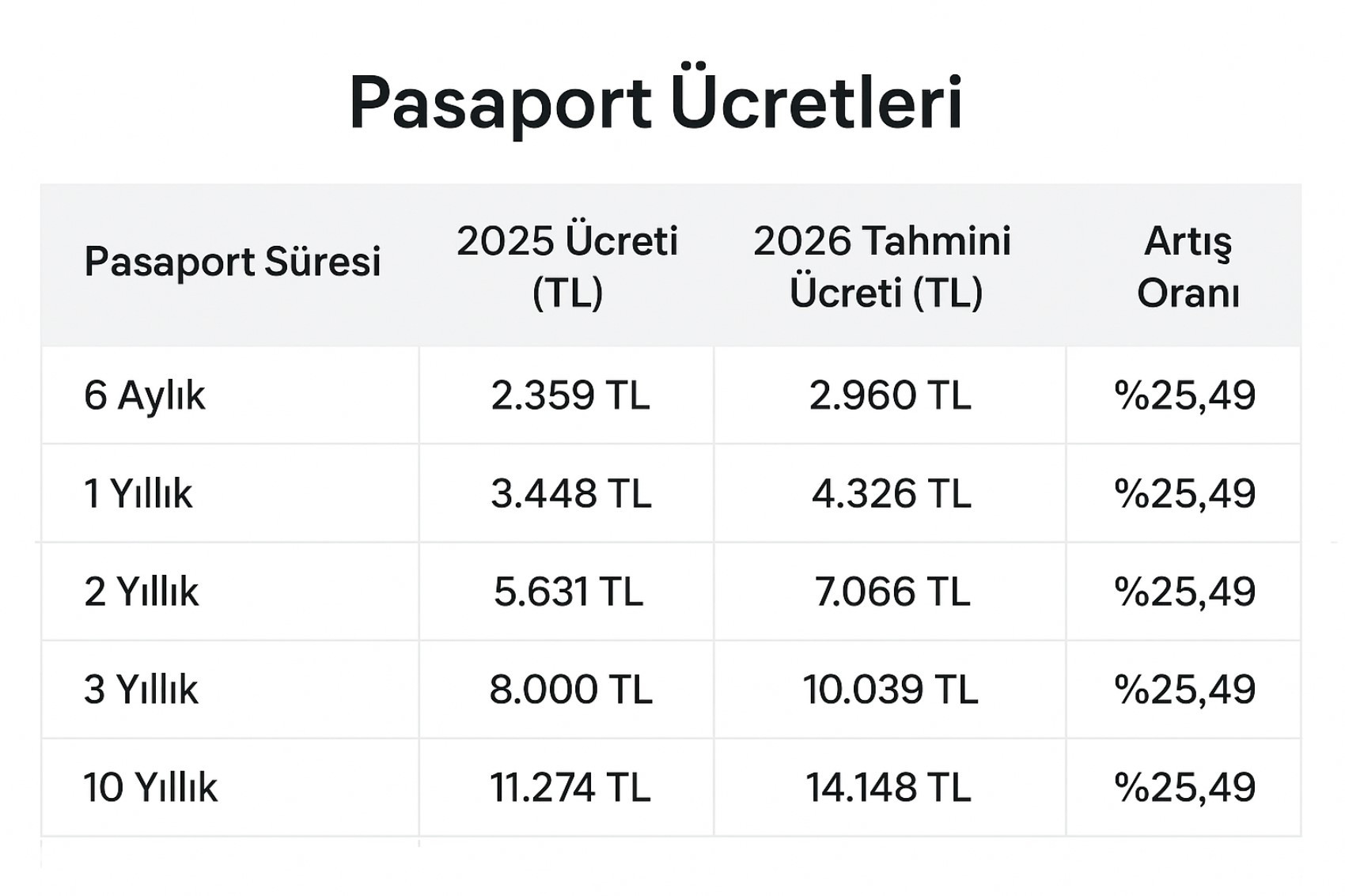 TÜİK'in açıkladığı verilere göre, 2026 yılında pasaport harçları önemli ölçüde artacak. Cumhurbaşkanı'nın müdahalesi olmazsa, 10 yıllık pasaport ücreti 14 bin TL'yi aşabilir.