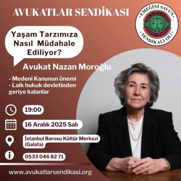 Avukatlar Sendikası’nın Aralık ayı atölyesinin konusu “Yaşam tarzımıza nasıl müdahale ediliyor?”, “Medeni Kanunun önemi”.