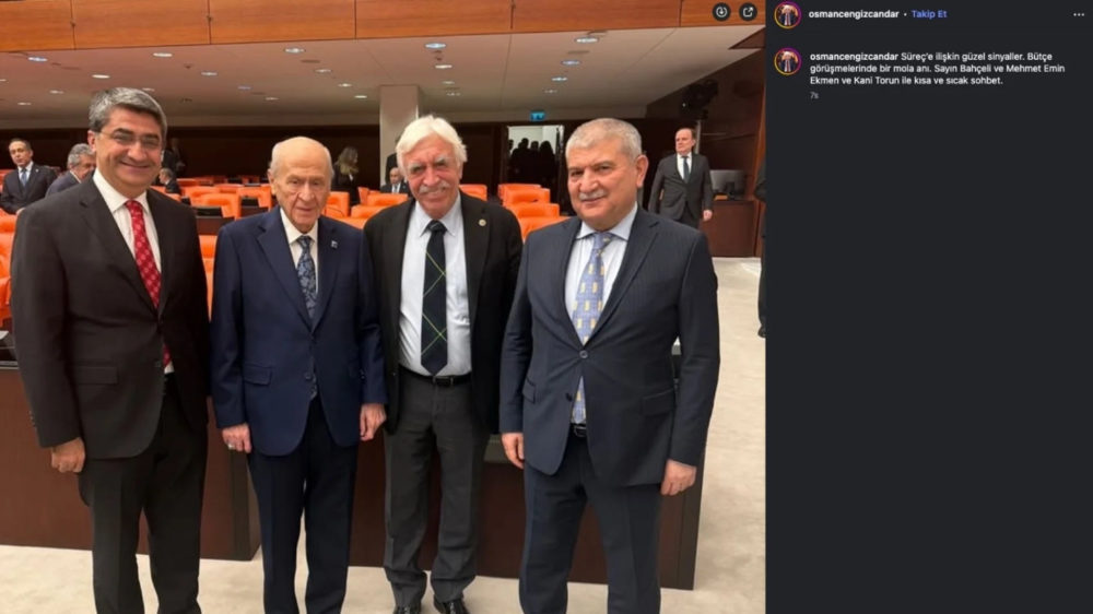 DEM Parti Milletvekili Cengiz Çandar da görüşmeler sırasında Bahçeli’yle yan yana görüntülendikleri bir kareyi sosyal medya hesabından paylaştı. Çandar, fotoğraf eşliğinde şu ifadeleri kullandı: