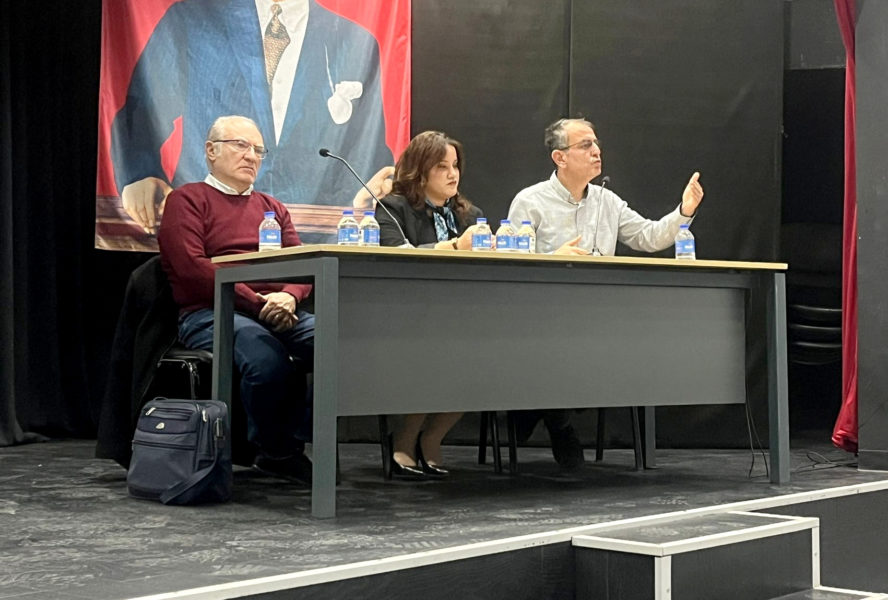 Toplantıda ilk konuşmayı yapan Prof. Dr. İlker Cenan Bıçakçı, önceliğin; gerici, çağ dışı ve BOP ile uyumlu bir anayasa yapılması olduğunu dile getirerek;